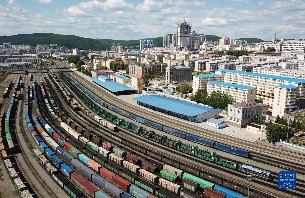 2022年6月8日拍攝的中國(黑龍江)自由貿(mào)易試驗區(qū)綏芬河片區(qū)局部(無人機照片)。新華社記者 王建威 攝