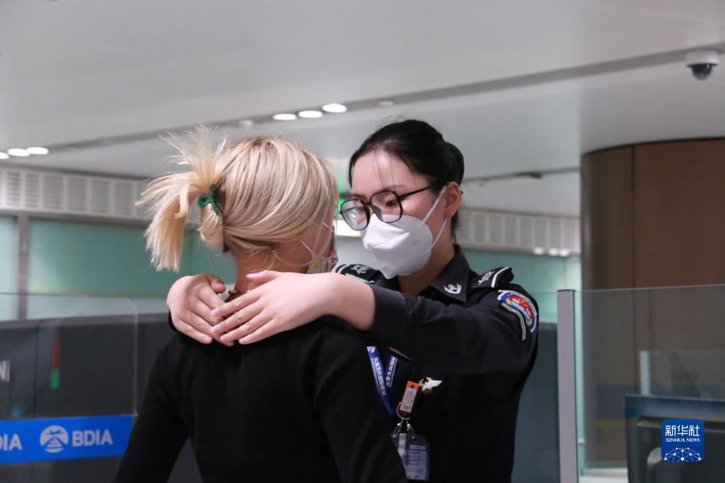 1月17日,在北京大興機場,安檢員為乘坐CZ309次北京飛往香港航班的旅客安檢。新華社發(fā)(廖玉琳 攝)