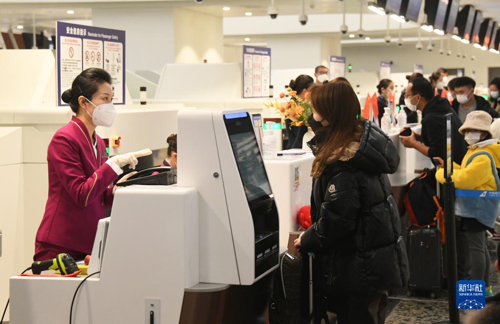 1月17日,在北京大興機場,乘坐CZ309次北京大興飛往香港航班的旅客辦理值機。新華社記者 任超 攝