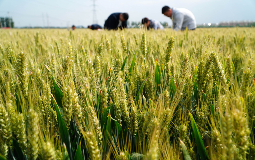 2023年5月24日,在山東省菏澤市巨野縣董官屯鎮(zhèn),高標準農(nóng)田里的小麥長勢良好豐收在望。新華社記者徐速繪 攝
