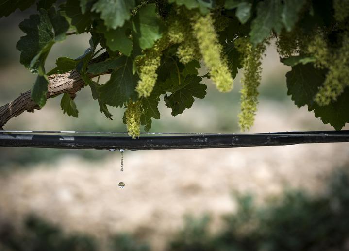 中糧長(zhǎng)城天賦釀酒葡萄種植基地借助智慧葡萄園灌溉系統(tǒng),精確控制用水量,進(jìn)行調(diào)虧灌溉(6月5日攝)。新華社記者 馮開華 攝