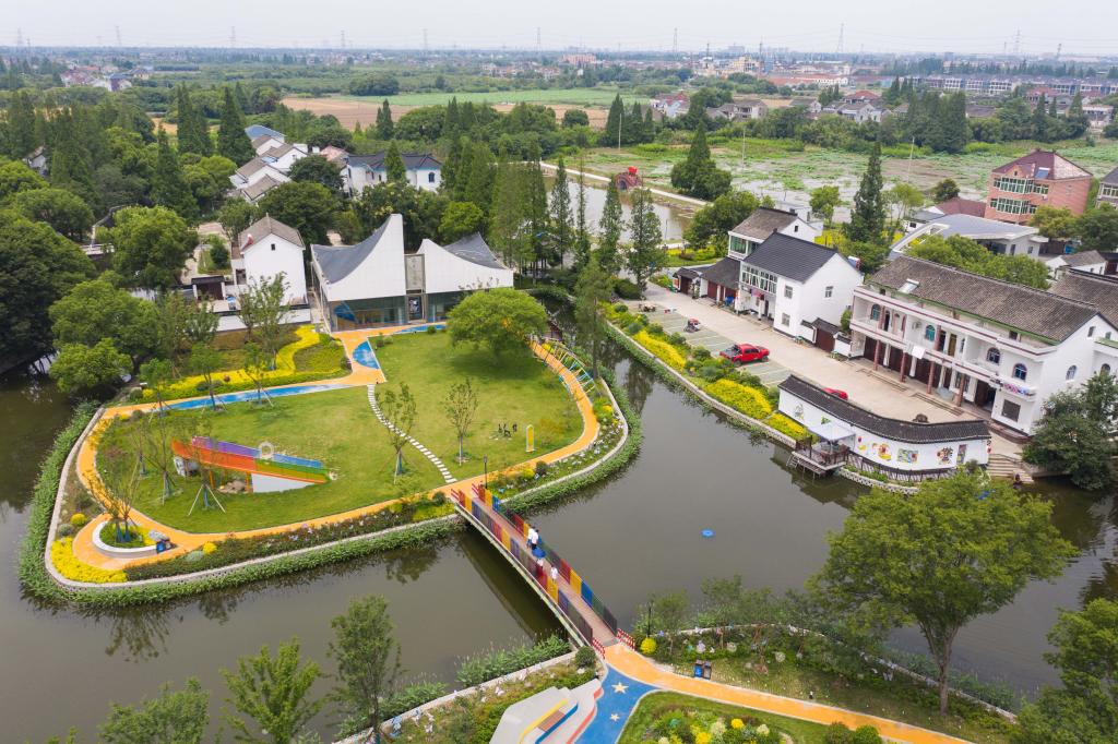 6月15日,空中俯瞰嘉興市秀洲區(qū)新塍鎮(zhèn)洛東村(無(wú)人機(jī)照片)。新華社記者 徐昱 攝