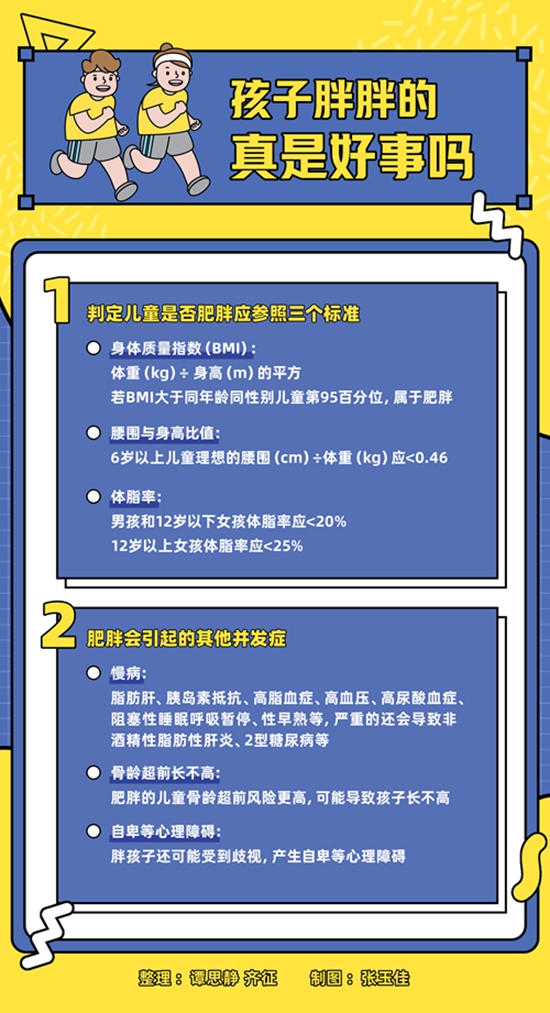 兒童肥胖比“中年發(fā)福”危害更大。兒童期肥胖是引起成人肥胖及各種并發(fā)癥的危險(xiǎn)因素之一,并且孩子成年后患慢性疾病的風(fēng)險(xiǎn)概率增加,特別是心血管疾病和代謝性疾病。