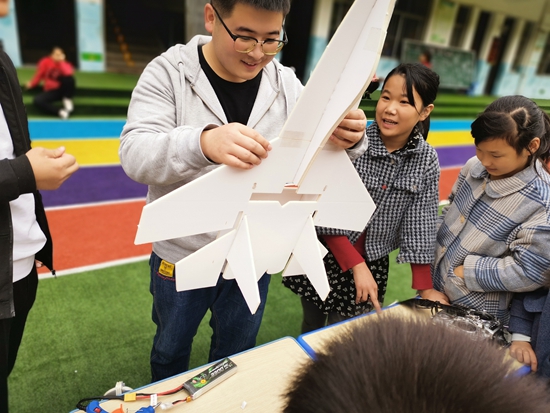 志愿者與孩子們一起制作航模飛機。受訪者供圖