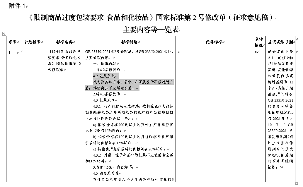 央視網(wǎng)消息:據(jù)工業(yè)和信息化部,根據(jù)國家標(biāo)準(zhǔn)委下達(dá)的強(qiáng)制性國家標(biāo)準(zhǔn)制修訂計(jì)劃,工業(yè)和信息化部組織完成了《限制商品過度包裝要求 食品和化妝品》強(qiáng)制性國家標(biāo)準(zhǔn)第2號(hào)修改單(征求意見稿)的編制工作。為進(jìn)一步聽取社會(huì)各界意見,現(xiàn)對(duì)標(biāo)準(zhǔn)征求意見稿及編制說明予以公示,截止日期2023年9月17日。