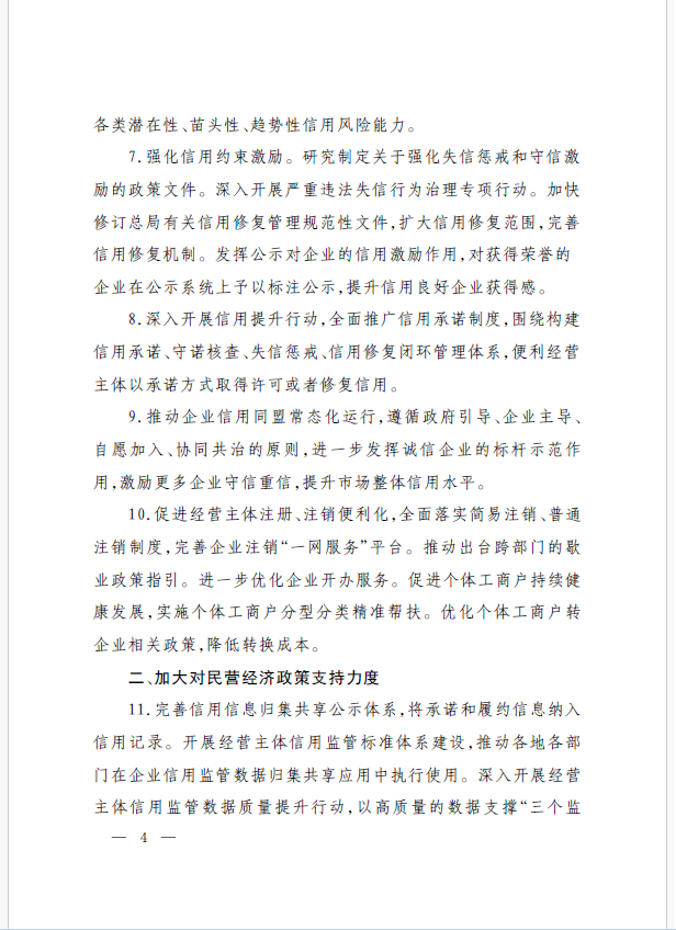 22條舉措聚焦五個方面,落實(shí)《意見》部署要求,回應(yīng)了民營經(jīng)濟(jì)各類關(guān)切:一是持續(xù)優(yōu)化民營經(jīng)濟(jì)發(fā)展環(huán)境。持續(xù)破除市場準(zhǔn)入壁壘,全面落實(shí)公平競爭政策制度,強(qiáng)化制止濫用行政權(quán)力排除、限制競爭的反壟斷執(zhí)法,完善社會信用激勵約束機(jī)制,健全失信行為糾正后的信用修復(fù)機(jī)制。二是加大對民營經(jīng)濟(jì)政策支持力度。完善信用信息歸集共享,健全中小微企業(yè)和個體工商戶信用評級和評價(jià)體系。完善支持政策直達(dá)快享機(jī)制。三是強(qiáng)化民營經(jīng)濟(jì)發(fā)展法治保障。持續(xù)完善知識產(chǎn)權(quán)保護(hù)體系,完善監(jiān)管執(zhí)法體系,杜絕選擇性執(zhí)法,健全涉企收費(fèi)長效監(jiān)管機(jī)制。四是著力推動民營經(jīng)濟(jì)實(shí)現(xiàn)高質(zhì)量發(fā)展。支持民營企業(yè)參與標(biāo)準(zhǔn)制定,計(jì)量服務(wù)中小企業(yè)。依法規(guī)范和引導(dǎo)民營資本健康發(fā)展,推動平臺經(jīng)濟(jì)健康發(fā)展。五是持續(xù)營造關(guān)心促進(jìn)民營經(jīng)濟(jì)發(fā)展壯大社會氛圍,及時推廣經(jīng)驗(yàn)做法,加大宣傳。