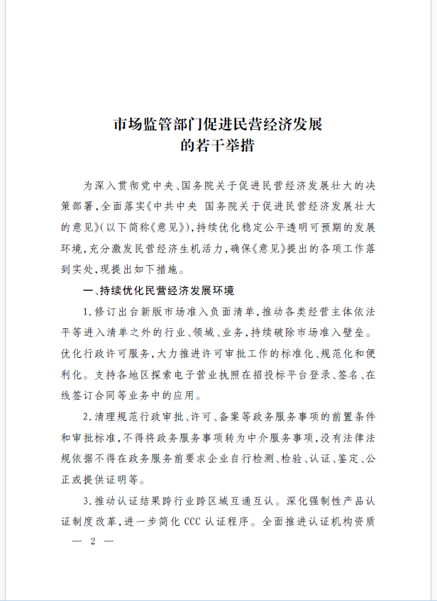 9月18日,市場監(jiān)管總局正式發(fā)布《市場監(jiān)管部門促進(jìn)民營經(jīng)濟(jì)發(fā)展的若干舉措》。這是7月14日《中共中央 國務(wù)院關(guān)于促進(jìn)民營經(jīng)濟(jì)發(fā)展壯大的意見》出臺以來,市場監(jiān)管部門貫徹落實(shí)黨中央、國務(wù)院決策部署出臺的制度舉措,對提振民營經(jīng)濟(jì)發(fā)展信心,依法規(guī)范和引導(dǎo)民營資本健康發(fā)展具有重要意義。