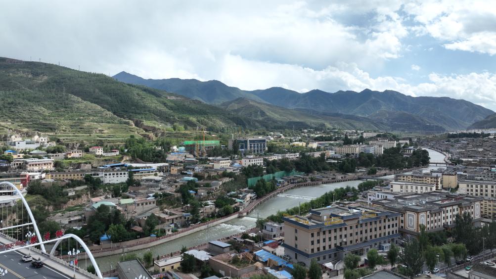 2023年8月24日,無人機(jī)拍攝的同仁市隆務(wù)河景色。(新華社記者張宏祥 攝)