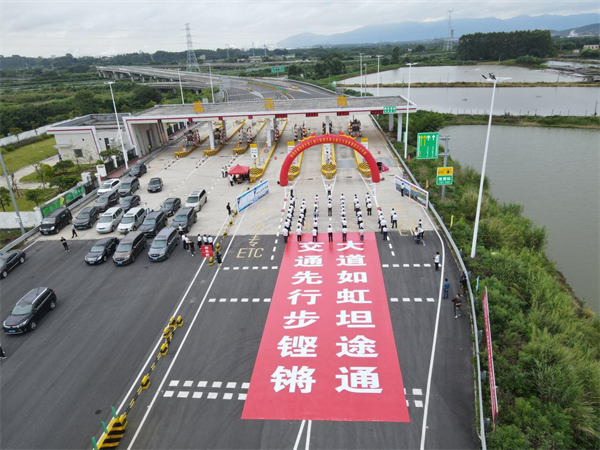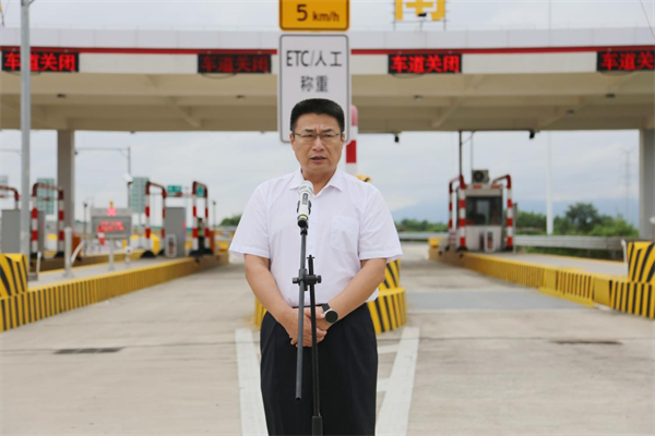 肇慶市副市長謝桂坤宣布東進(jìn)大道三期工程蓮花南互通立交及收費站正式開通