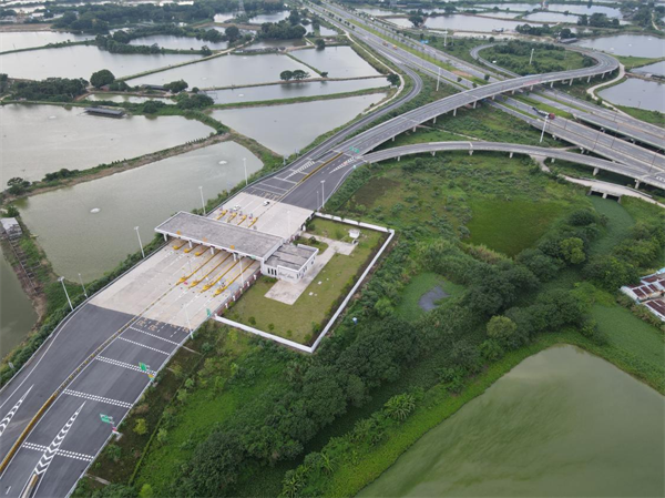 東進(jìn)大道三期工程蓮花南互通立交及收費站位于肇慶市鼎湖區(qū)、肇慶新區(qū)及四會市三地交界處,與既有江肇高速公路相連接,與東進(jìn)大道主線相交,型式為雙喇叭型。其中設(shè)匝道10條,橋梁7座,收費站房1座,車道數(shù)為4入4出。施工過程中克服了跨高速既有線施工、40m箱梁跨通行高速安全架設(shè)等多個技術(shù)難題,是繼馬房特大橋后,又一條拓展當(dāng)?shù)爻鞘锌臻g、加強粵港澳大灣區(qū)各地溝通交流的重要交通通道,為肇慶城市建設(shè)、產(chǎn)業(yè)布局提供強有力的支撐,對提升營商環(huán)境和產(chǎn)業(yè)升級優(yōu)化提供有力保障。(王興隆/文 任偉/圖)