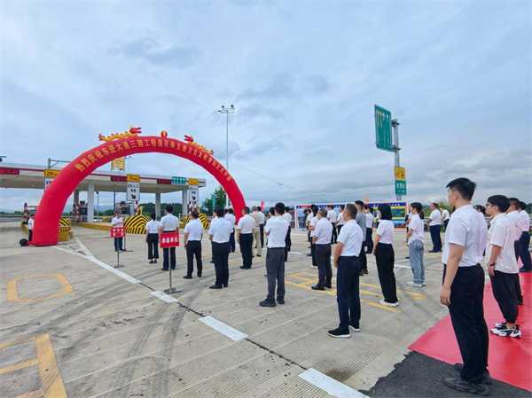 10月8日,由中鐵一局一公司承建的肇慶東進(jìn)大道三期工程蓮花南互通立交及收費站正式開通運營。肇慶市副市長謝桂坤,中鐵一局副總經(jīng)理郭秀春,中鐵一局一公司總經(jīng)理韓勝等相關(guān)領(lǐng)導(dǎo)以及肇慶市政府有關(guān)部門、市交通集團(tuán)、設(shè)計、監(jiān)理和項目參建人員現(xiàn)場共同見證蓮花南互通立交及收費站開通。