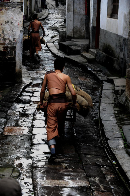 湖北赤壁羊樓洞古鎮(zhèn)是萬里茶道的重要生產(chǎn)加工集散中心。生產(chǎn)的磚茶就是沿著彎曲的石板路,用獨(dú)輪雞公車銷往世界各地。