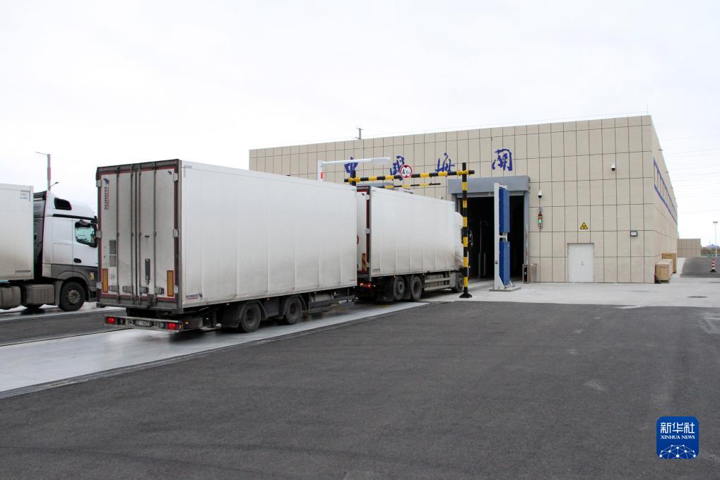 11月5日,入境貨車在阿拉山口公路口岸停車場(chǎng)等待檢查結(jié)果。新華社記者 趙晨捷 攝