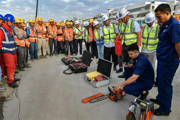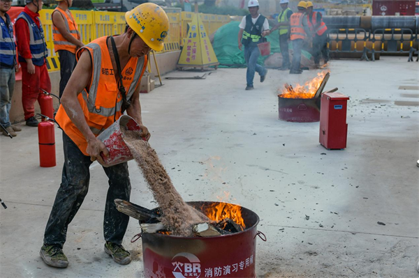11月9日是第32個全國消防日。這次消防演練模擬火災發(fā)生后如何使用干粉滅火器、干沙滅火,生活區(qū)宿舍起火員工俯身毛巾捂住口鼻逃生、昏迷受傷員工的轉移救治,以及消防救援機構的介入救援等方面進行演練。項目監(jiān)理單位點評時認為,此次演練基本上是按照實景進行的,進一步增強了項目的應急應變、團隊協(xié)調和處置保障能力,為應對突發(fā)事件積累寶貴經(jīng)驗,保證安全生產(chǎn)工作全面落實。