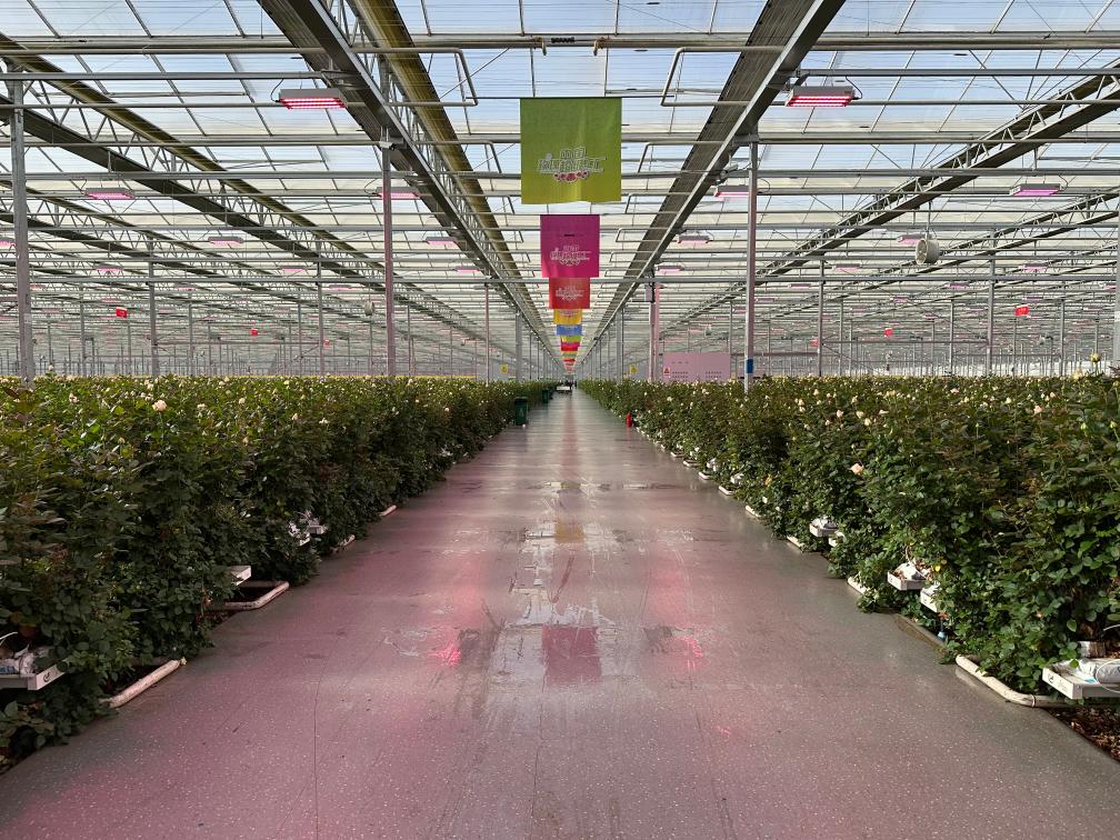 甘肅臨夏百益億農(nóng)國(guó)際鮮花港玫瑰工廠一景。 新華社記者 張文靜 攝