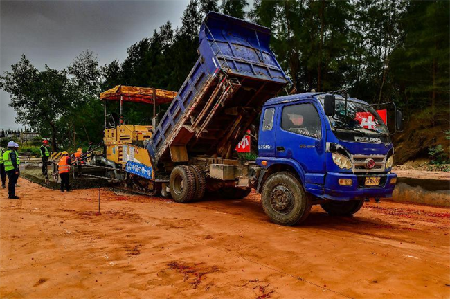 這次水穩(wěn)層攤鋪施工的是海濱一路,長(zhǎng)約1745米,路寬38米。該路段已于2023年3月31日開(kāi)始施工,在先后完成軟基處理、路基工程、雨水管道、電力管道、給水管道工程后,開(kāi)始了水穩(wěn)層攤鋪施工。