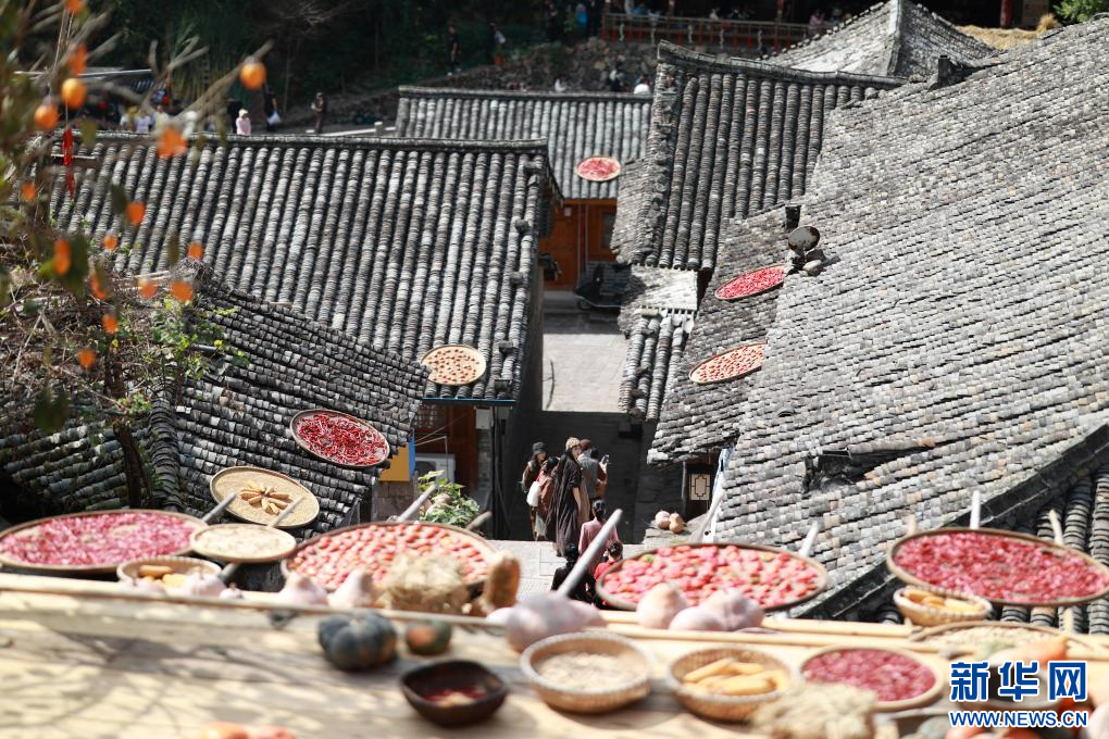 林坑村五彩斑斕的曬秋場(chǎng)景。新華網(wǎng)發(fā)