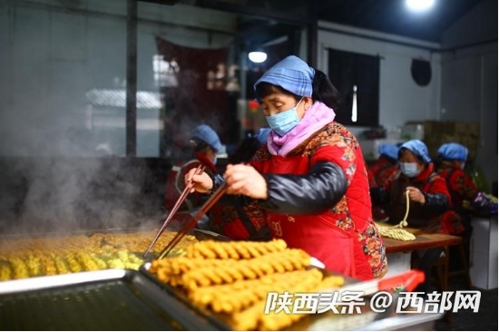 袁家村麻花店店員正在炸麻花