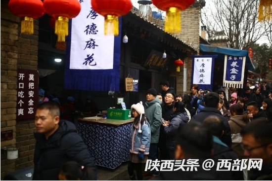 臺(tái)上唱著皮影戲,呷一口老碗茶舌底流香;走上小吃街,剛出鍋的麻花、醪糟、酸奶,熱氣騰騰的粉絲湯羊血、地道的陜西涼皮……都讓來(lái)自四面八方的食客眼花繚亂。