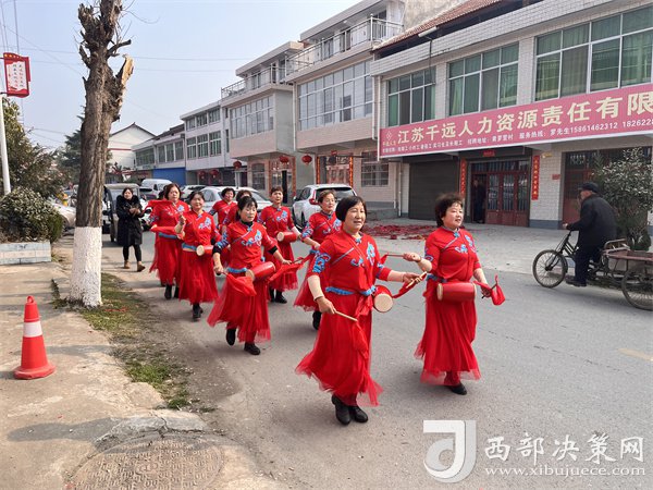 農(nóng)歷正月初一清晨,楊家山村的腰鼓隊(duì)敲鑼打鼓地走上街頭,進(jìn)行精彩的腰鼓舞表演。前行之處,黃羅營(yíng)村村委會(huì)也已做好準(zhǔn)備,演員們妝容完畢,等待亮相。街道兩側(cè),一派繁榮景象,讓人感受到新年的喜慶。沿著高速引道下行,沈寨村、毛堡社區(qū)居委會(huì)的春節(jié)文藝演出同樣如火如荼地進(jìn)行,為全鎮(zhèn)的春節(jié)氛圍錦上添花。
