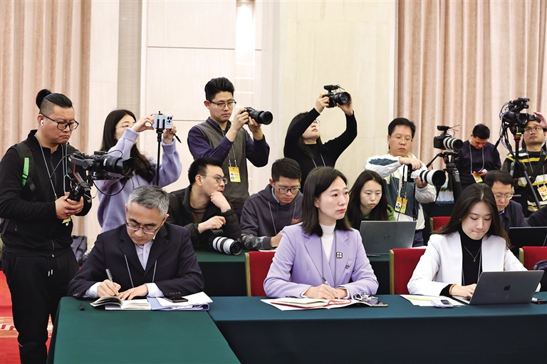 3月6日上午,陜西代表團(tuán)媒體開放日活動在人民大會堂陜西廳舉行。當(dāng)天,共有來自人民日報、新華社、中央廣播電視總臺、法新社、中阿衛(wèi)視等50多家中外媒體的70多名記者參加。