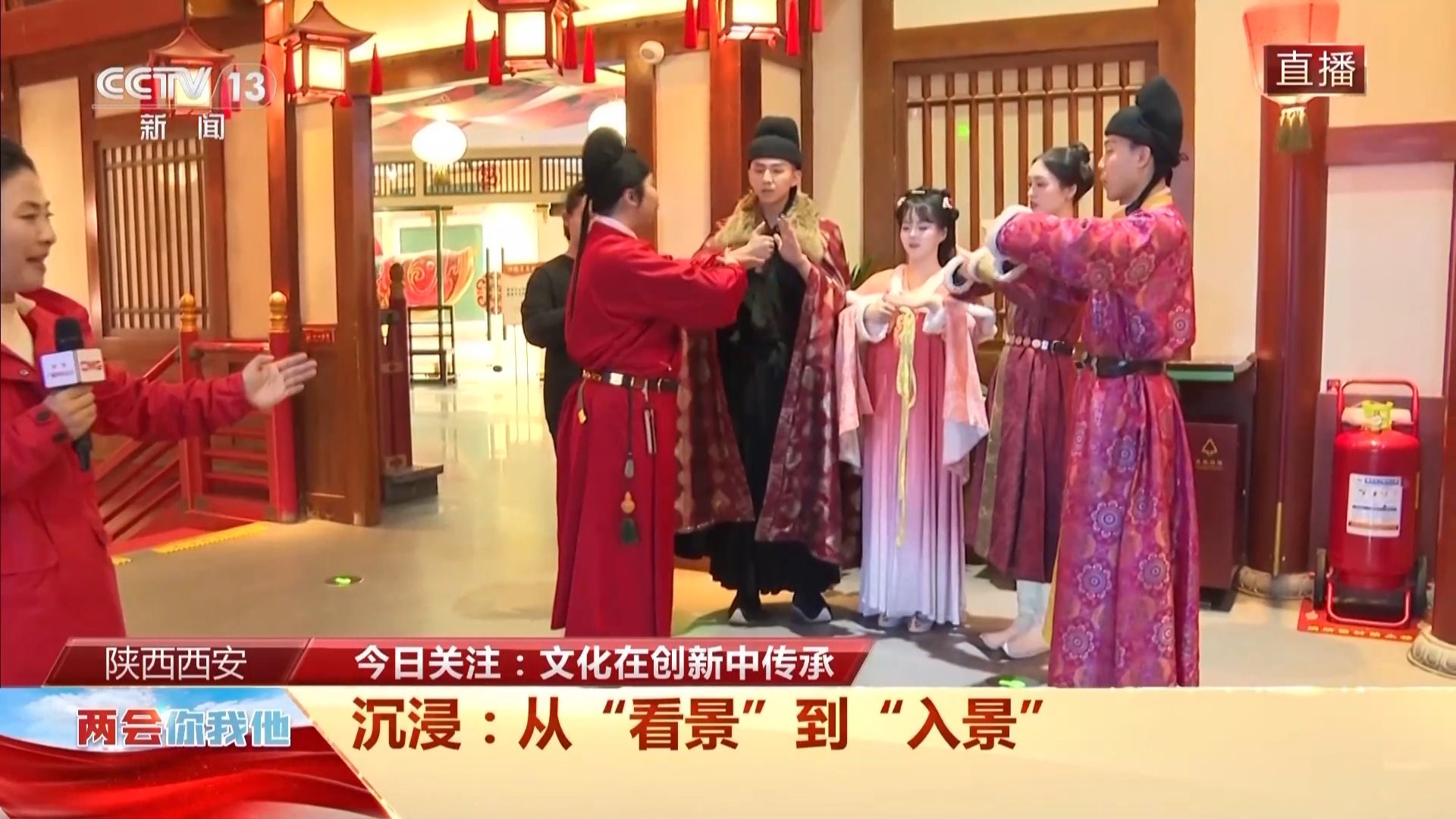 總臺(tái)記者譚海梅:我們現(xiàn)在已經(jīng)穿越回了一千多年前的唐朝。您看這古色古香的景致,還有身邊穿行而過(guò)的古人。這里其實(shí)是西安一處以唐文化為主題的沉浸式旅游街區(qū)——長(zhǎng)安十二時(shí)辰。這里根據(jù)同名影視劇里的場(chǎng)景打造而來(lái),開(kāi)業(yè)不到兩年,已經(jīng)成為來(lái)西安旅游的熱門打卡地之一。現(xiàn)在是景區(qū)的淡季,但是現(xiàn)場(chǎng)依然非常熱鬧,周末每天的客流量都在8000人次左右。古城里的新場(chǎng)景為何如此火爆?我們圍繞三個(gè)關(guān)鍵詞來(lái)給大家梳理。