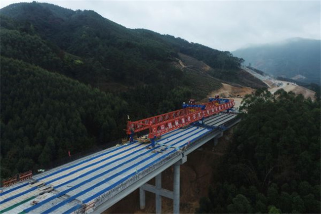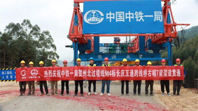 西部決策網(wǎng)訊 3月22日,中鐵一局三公司賀州北過境線項目長慶互通跨線橋右幅T梁架設(shè)順利貫通。